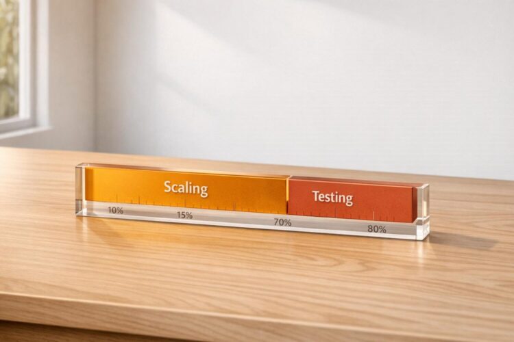 How should I allocate my budget between testing new strategies and scaling proven ones?
